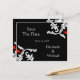 Schwarz mit Weiß, Red Damask Hochzeit Save the Dat Ankündigungspostkarte