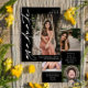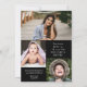 Eleganter schwarzer Abschluss Einladung personalisiert mit einem Foto auf dem Cover und drei weiteren Foto auf der Rückseite. Doppelseitige Abschluss-Einladung mit schwarzem Hintergrund. 2 in 1 Abschluss Ankündigung und Einladung personalisiert mit Fotos und dem Namen des Absolventen in Weiß.