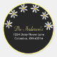 Schwarz mit White Daisis Address Labels Runder Aufkleber