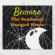 Bierflaschen mit "Vorsicht" und personalisierter schwarzer Text mit White Spider Webs und niedlich Moderner Geist Spaß und freundliches Halloween-Party / Spuk Haus Party.