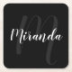Schwarz-Modern-Script-Personalisiert-Monogramm und Rechteckiger Pappuntersetzer