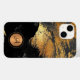 Moderne abstrakte Glam iPhone Gehäuse mit vergoldetem metallischem Glitzer aus Kupfer und schwarz bemalten Pinselstrichen. +++++++++++ Persönlich mit Ihrem Monogramm / Name initial in einer eleganten bearbeitbaren Schriftzeichen-Kalligraphie-Schrift!