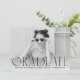 Mit unseren modernen Abschlussankündigungen zum Foto kündigen Sie Ihren Abschluss stilvoll an. Die einfachen Graduierungsankündigungen stellen Ihr bevorzugtes, horizontal ausgerichtetes Senior Foto mit dem "Graduate" in einem modernen Schwarz-Text-Overlay dar. Personalisieren Sie die Front der trendigen Graduierungsankündigungen, indem Sie den Namen des Absolventen, den Namen der Schule und das Abschluss Jahr hinzufügen. Die Karte zeigt ein schwarz-weiß gestreiftes Design an.