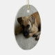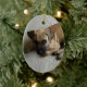 Schwarz-Mund Kanaillewelpe mit blauem Spielzeug Keramik Ornament