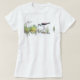 Niedliche schwarze Necked Stelze, die nach Nahrung in den Gräsern, digital getan in Cartoon wie Entwurf sucht. Spitze, Shirt, Unterhemd, Sweatshirt, T - Shirt, etc.