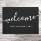 Schwarze oder benutzerdefinierte Farbe Begrüßungstür mit dem Text "Begrüßung" und Ihrem benutzerdefinierten Text unten.