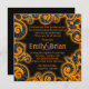 Schwarz-orange-Glitzer-Damast wirbeln Einladungen für Hochzeiten