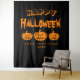 Schwarz-orangefarbenes Halloween-Party Foto Hintergrund. Ideal, um berufliche Gruppen Fotos zu machen und mit Familie, Freunden oder Gästen zu wählen. Personalisierte Wanddekoration in kleinen und großen extra großen Größen. Personalisierte Dekoration für lustige Ansammlung, Treffen, Feiern etc. Kürbiskopf Schnitzer Kürbislaterne und fett Text.