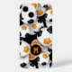 Dieses fußballbezogene iPhone-Gehäuse mit variantenreichen schwarzen, orangefarbenen und weißen Fußballbälle, die nach einem zufälligen Muster auf einem individuell anpassbaren schwarzen Hintergrund angeordnet sind - passen Sie ihre Monogramm-, Varsity- oder Jersey-Nummer - von katz_d_zynes an