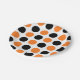 Abstrakte Kunst der schwarzen und orangefarbenen Polka-Punkte auf weißem Hintergrund.
