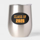 Mit diesem angesagten Edelstahl-Weinkrüger mit schwarz-orangefarbenen Schulfarben zeigen Sie Ihnen die Schulfarben. Das Jahr der Abschluss-Klasse ist fett, orange auf einem schwarzen, ovalen Design bedruckt. Gut geeignet für Grads und Wiedersehen. Personalisieren Sie Ihren Weinwäscher, indem Sie das Jahr nach Wunsch bearbeiten und ersetzen.