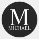 Schwarz-Personalisiert-Monogramm und Name Runder Aufkleber