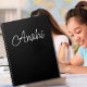 Niedliches und mädchenhaftes Accessoire an Schule und Büroschreibtisch mit elegantem schwarzem Hintergrund, schlicht und minimalistisch, aber modern, weiß und grau, für Ihre Personalisierung. Ich würde ein schönes zurück ins Schulbuch machen, ideal für Lehrer und Schüler gleichermaßen.