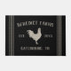 Herzlich willkommen in Ihrem Haus mit diesem charmanten rustikalen Bauernhaus Stil Türme. Das personalisierte Design zeigt Ihren Familiennamen oder landwirtschaftlichen Namen in einer hellbraunen Schrift, zusammen mit Ihrem Jahr etabliert, Standort und einer Hahn-Illustration. Die Rockleiste mit Details auf einem schwarzen Hintergrund rundet das Design ab.