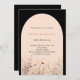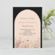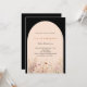 Eine elegante Wildblume. Schwarzer Hintergrund und ein pfirsichfarbener Bogen. Die Wildblumen sind in Beige, Rosa und Aquarell gehalten.