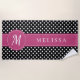 Schwarz-Pink-Weiß-Monogram-Polka-Punkte Strandtuch