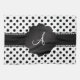 Weiße schwarze Polka-Punkte-Muster-Hintergrund mit schwarzem Kammerkreis und schwarzen Diamantenstreifen (nicht echte Diamanten), Ihre Monogramm-Geschenke oder Ihre Initialen Buchstaben ändern sich zu jedem Buchstaben a,b,c,d,e,f,h,i,k,l,m,n,o,p,q,s,t,u,v,w,x,y,z Polka-Punkt Geschenkideen.