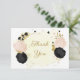 Romantische schwarz-rosa Blume mit goldenen Blätter botanische Hochzeit danke Ihnen Karte. Die Einzelheiten des Glitzer werden simuliert.