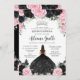 Schwarz Rosa Blume Kleid Silver Quinceanera Einladung