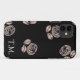 Monogram Black and Pink Floral iPhone Case Personalisieren Sie diese moderne Blumenkiste mit Ihren Initialen.