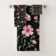 Schwarz, rosa, floral, drei Stück Badhandtuch Set