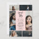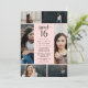 Chic Sweet 16 Einladung mit einer Foto-Collage mit Platz für sechs Ihrer eigenen Fotos des Geburtstagsmädchens. Fügen Sie Ihre Einladungsworte und Details in schwarzen Schriftart vor einem rosa Hintergrund hinzu. Die Rückseite ist mit einem rosafarbenen Schwarz-Rosa-Druck mit einem schwachen Wasserfarbeneffekt versehen.