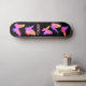 Ein farbenfrohe Skateboard mit schönen und hellen rosa Schmetterlingen auf einem schwarzen Hintergrund mit einem Namen in Pink, der vom Menü Personalize geändert werden kann.