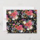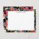 Blumenpapier-Karten mit einem Blumenrand aus orangefarbenen, rosa, weißen und rot-grünen Blume auf schwarzem Hintergrund. Fügen Sie oben Ihren Namen in modernen schwarzen Buchstaben hinzu.