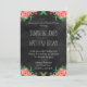 © Sunny Mars Designs - Blumenzauber Hibiskus: Rosa auf Chalkboard 5" x 7" Hochzeitsessen Probe Einladungen - Moderne, elegante, einzigartige, klassische, trendige, schicke, individuell anpassbare Black Chalkboard Probe Einladungen mit schönem, hübsch rosa Wirblen, floralen Hibiskus Design vor einem schwarzen Kreidebrett Hintergrund.