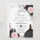 Schwarz Rosa Rosen Blütendruckerin Sweet 16 Silver Einladung