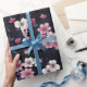Schwarz-Rosa-Sakura-Blume, Musterdesign, Geschenkpapier