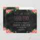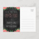 © Sunny Mars Designs - Blumenmuster Hibiskus: Pink auf Chalkboard Wedding Save The Date Post Cards - Individuell gestaltbare, moderne, elegante, klassische, schicke, individuell bedruckte schwarze Tafel Save the Date Hochzeitsankündigung Postkarte mit schönem, stilvollem Wirbel rosa, tropisches Hibiskus-Design an einer Tafel oder Kreide Hintergrund.