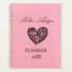 Blush Pink und Black Leopard Muster Herzplaner Elegant, cool, glamourös und feminin mit rot-rosa und schwarz Leopardenmuster Herz. Personalisieren Sie Ihren Namen und fügen Sie ihn hinzu. Vorlage für ein Jahr, schwarze Buchstaben. Der Name ist mit einem modernen handgeschriebenen Stilskript geschrieben. Ideal für Unternehmerinnen, Make-up Künstler, Ladenbesitzer, Berater.
