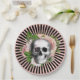 Diese Papierplatte weist einen schwarz-rosa Radialstreifen um den Rand mit einem rosa Zentrum und einem goldenen Rand auf. Ein von Rose umgebener Schädel ist "toter" Mittelpunkt! Ideal für Halloween oder eine andere unheimliche Ansammlung.