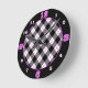 Schwarz/Rosa/Weiß-Raute Karierte Runduhr Runde Wanduhr