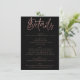 Schwarz & Rose Gold Glitzer Hochzeitsdetails Begleitkarte