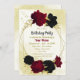 Schwarz-Rot-Blume Gold-Blätter Geburtstag Einladung