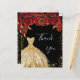 Ein weiblicher und eleganter Geburtstag Dankeschön Karte. Ein schwarzer Hintergrund mit goldenem Imitat, Glitzer, Glitzern, rote Rosen und goldenem Kleid. vorne ein großes handgeschriebenes Skript und den Text: Danke. Zurück: Personalisieren Sie Ihre Dankeschön Notiz und Name. Der Name ist mit einem modernen handgeschriebenen Stilskript geschrieben.