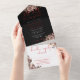 Das Ganze in einer schwarz-rot-gotischen Hochzeitseinladung mit Rose-Blumengestühlen, die auf elegante Typografie treffen. Die Einladung enthält eine perforierte RSVP-Karte, die individuell adressiert oder links werden kann, damit Sie die Adressdaten Ihres Gastes handschreiben können. Entwickelt von Thisisnotme©