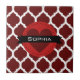 Chic marokkanisches Gittermuster in dunkelroter Farbe mit einem roten und schwarzen Typenschild mit Herz, damit Sie Ihren Namen leicht personalisieren können. Ein niedliches trendiges Quarrefoliendesign, das ein cooles personalisiertes Geschenk für ihren Geburtstag, den Valentinstag, Weihnachten oder Abschluss Geschenke machen würde.