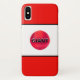 Schwarz Rot Weiß gestreifte iPhone Gehäuse. Riesentext kann angepasst werden.