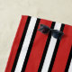 Trendiges Strandhandtuch mit vertikalen Streifen in rot, weiß und schwarz.