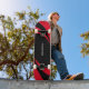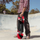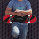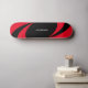 Schwarze und rote, wellenförmige Linien mit schwarzer Mitte und kalligrafischer Skateboard.