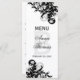 © 2013 Sozialite Designs. Unsere personalisierte Hochzeitskarte ist in Schwarz und Silbergrau geblüht / Wirbel vorne und hinten. Die Vorderseite beinhaltet die Namen des Paares und das Hochzeitstag. Auf der Rückseite befinden sich die Menüelemente. Bitte kontaktieren Sie Socialite Designs , wenn Sie Hilfe beim Anpassen dieser Menükarte für Ihre Veranstaltung benötigen.