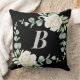 Schwarz, Silber, weißes, florales Monogramm Kissen