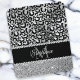 Oben glamouröses schwarz-silberfarbenes leopardenes Druckmuster. Imitate silberner Glitzer (aus Foto) auf der Unterseite. Es wird ein Schwarz-Weiß-Filter-Overlay auf die Imitate funkelnd Nashörner angewendet. Erstellen Sie Ihre eigene personalisierte Monogramm-Mousepad in Silber, Grau, Schwarz und Weiß. Wählen Sie Ihren bevorzugten zeitgenössischen Kalligraphie-Schriftart-Stil.
