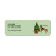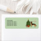 Desteis originelle Cartoon-Illustration eines schwarz-bräunlichen deutschen Schäferhundes. Der Hund wird von einem festlichen Weihnachtsbaum stehend, der mit roten und gelben Ornamenten verziert ist, einer Perlgarage und einem gelben Stern, der auf dem Baumgipfel steht. Es gibt auch zwei Geschenke vom Baum umwickelt und hinter dem Hund gibt es ein braunes Regal mit zwei Kerzen. Die Hintergrundfarbe ist hellgrün. Neben dem Design befindet sich ein personalisierbarer Textbereich.