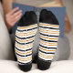 Rüsten Sie Ihr Sockenspiel mit unseren schwarz und terracotta gestreiften Socken. Die coolen Socken im Retro-Design verbinden klassischen und modernen Stil und sind für sie und ihn gleichermaßen geeignet.