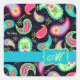 Schwarz Türkis Modernes Paisley Muster Monogram Quadratischer Aufkleber