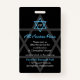 Einfach schwarz und blau Star von David Bar Mitzvah Empfang Einladung VIP Abzeichen. Die Farben dieses einfachen Bar Mitzvah Empfang Party Einladung Abzeichens sind schwarz, aquablau und weiß. Klassische Farben, maskulin, elegant und stilvoll. Um die Formulierung zu ändern, können Sie die Personalisierungs-Optionen verwenden. Für umfangreichere Änderungen am Design, z. B. Änderungen der Hintergrundfarbe, des Schriftartes, der Farbe des Schriftartes oder des Textlayouts, verwenden Sie die Option Anpassen. Die Star of David Symbole können auch entfernt werden, wenn man sie nicht will oder nur einige will. Melden Sie den Designer, wenn Sie möchten, dass andere Produkte mit diesem Bar Mitzvah Empfang zu gehen laden VIP alle Zugang Abzeichen.